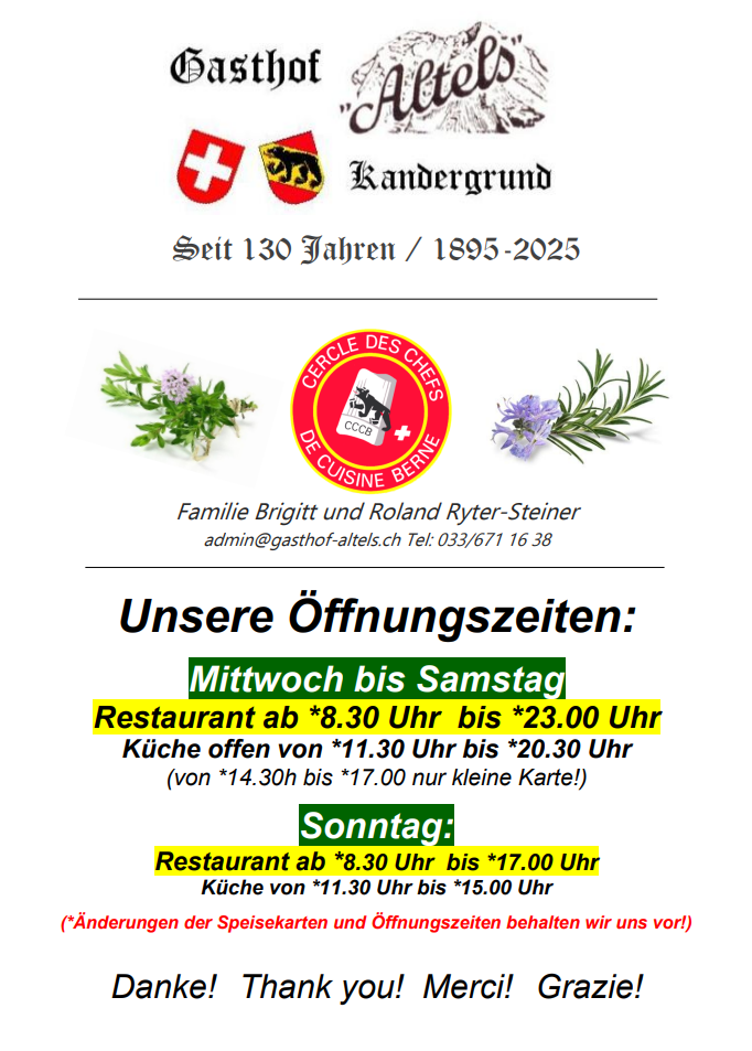 Gasthof Altels im Kandergrund – ein gemütlicher Ort im Berner Oberland